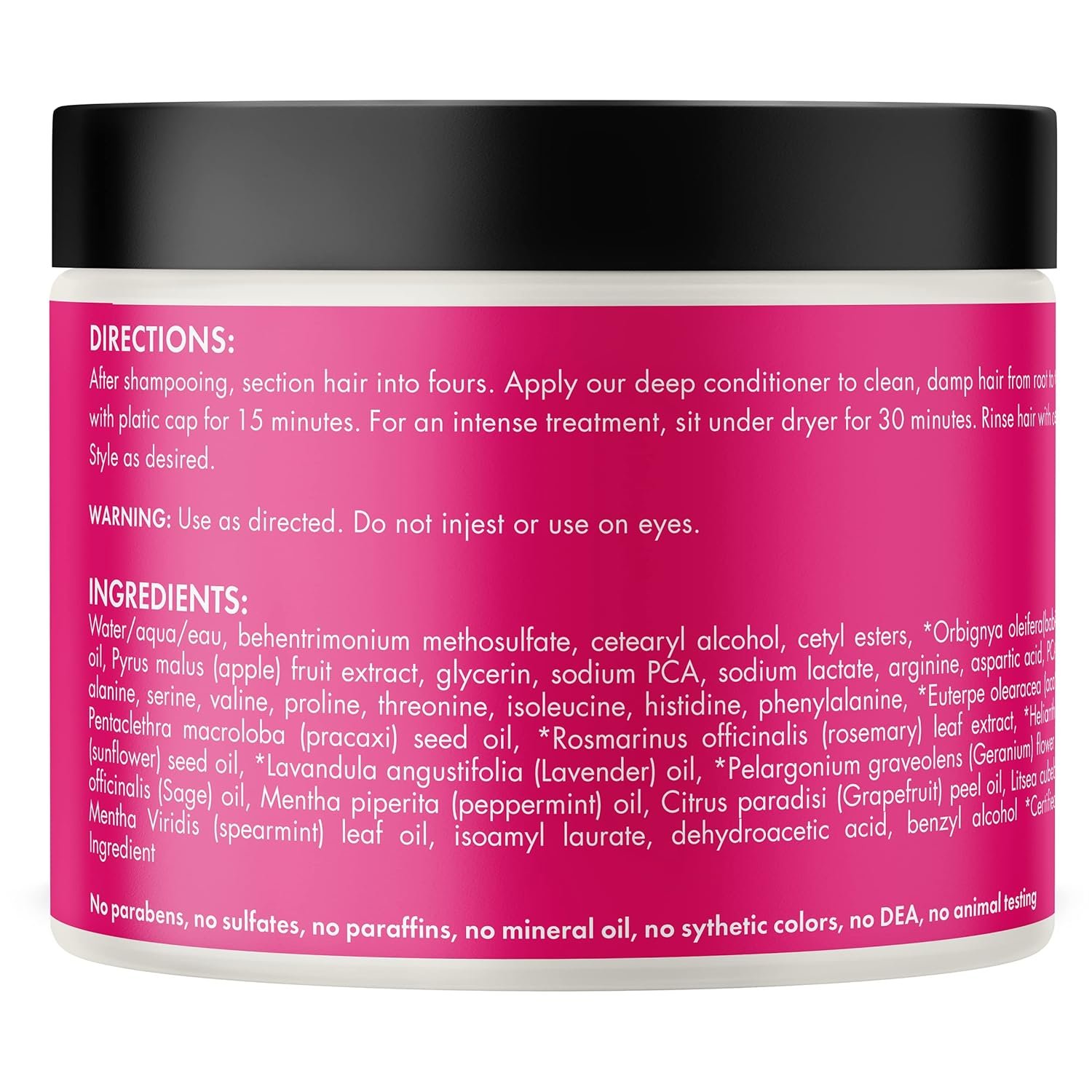 • Formulated without Parabens, sulfates, paraffins, mineral oils, DEA