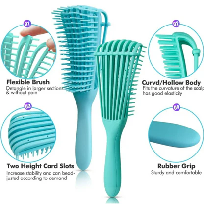Multifunctional brush suitable for all hair types, including adult and children’s hair. It is perfect for natural, coily, curly, wavy, wet, or dry hair.