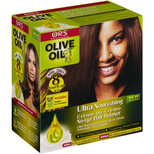 ORS Olive Oil 8 +1 Touch Up Ultra Nourishing Hair Relaxer Kit is a unique multiple-action, rich crème no-lye relaxer, which contains pure olive oil, wheat protein and other healthy and constructive ingredients for the hair.